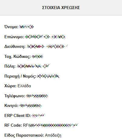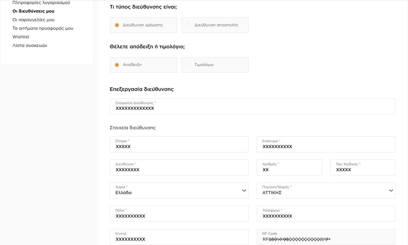 1. Στο υπομενού "Οι διευθύνσεις μου" από το μενού "Πληροφορίες λογαριασμού" έχοντας διαλέξει μία από τις διευθύνσεις χρέωσης: